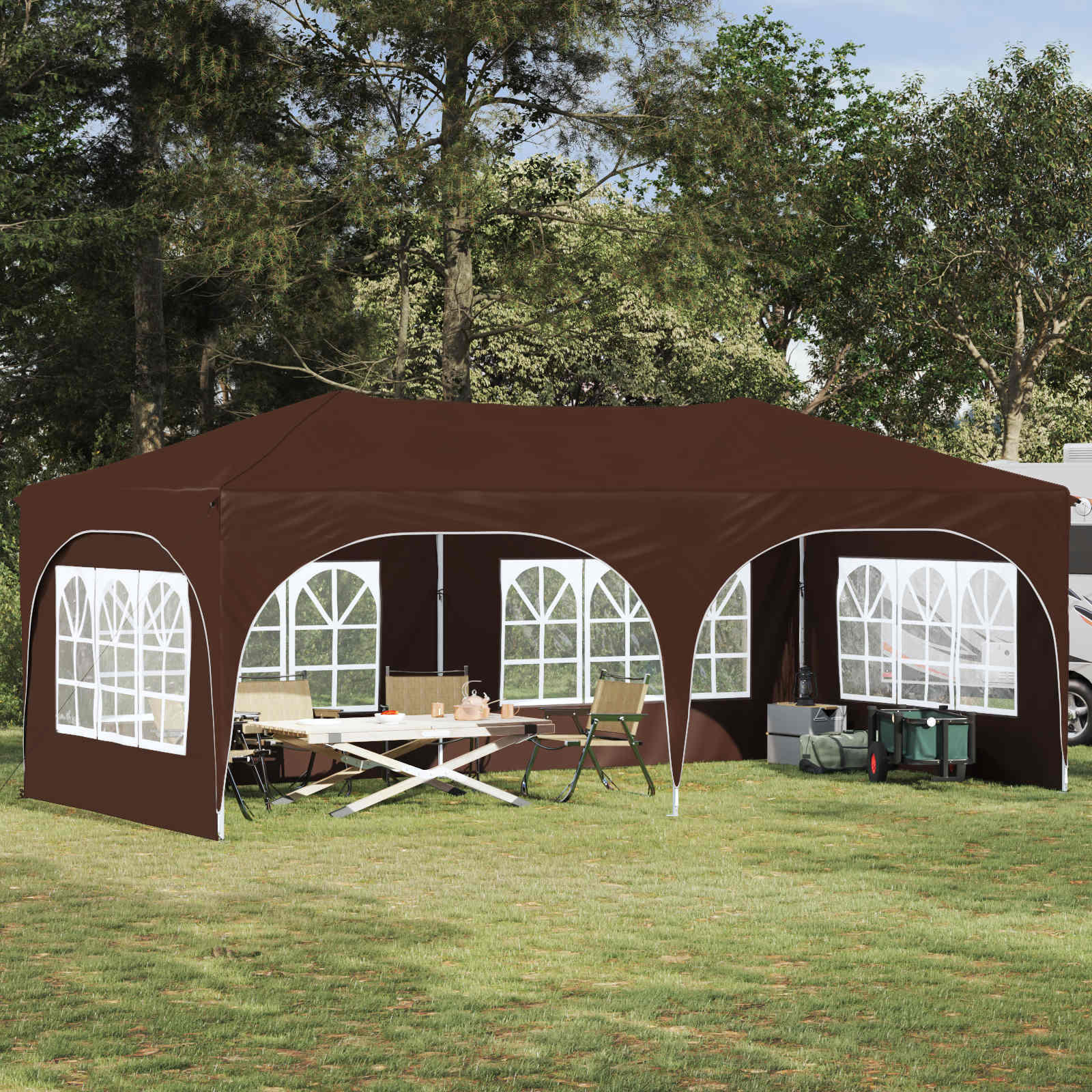 Tämä monikäyttöinen Pop-up Juhlateltta on suunniteltu tekemään ulkoilmatapahtumista unohtumattomia. Valmistettu korkealaatuisesta Oxford-kankaasta, se tarjoaa modernia tyyliä puhtain linjoin ja käytännöllisyydellä. Olitpa järjestämässä puutarhajuhlia, häitä tai mitä tahansa suurta tapahtumaa, tämä teltta takaa runsaasti suojaa ja hienostunutta tunnelmaa. Sen laaja kattavuus ja tyylikäs muotoilu tekevät siitä täydellisen yhdistelmän tyyliä ja käytännöllisyyttä, nostamalla jokaisen tilaisuuden tasoa.