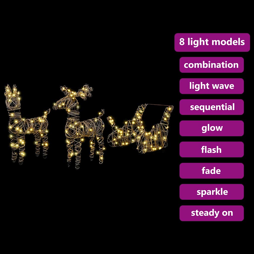 Tämä poro vastaanvetosleigh on mahtava lisä mihin tahansa juhla-asetelmaan. Se edustaa modernia eleganssia puhtaine linjoineen ja minimalistisella tyylillään. Valmistettu laadukkaista materiaaleista, se on kaunis katsella ja sujahtaa täydellisesti olohuoneisiin tai terasseille. Lämpimät valkoiset sävyt tuovat taianomaista tunnelmaa. Sen näyttävä koko erottuu joukosta ja mahdollistaa monia sijoitusvaihtoehtoja niin sisällä kuin ulkona, yhdistäen klassisen porohahmon moderniin tyyliin.