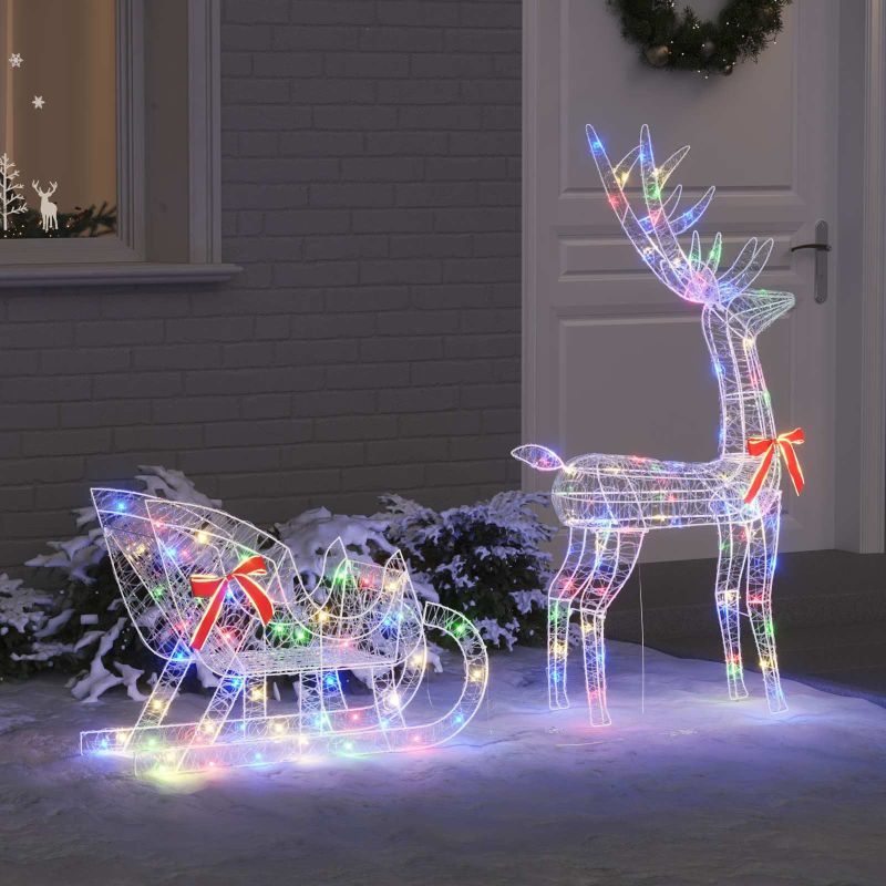 Poron vetämä joulusleigh värikäs 70 x 26 x 128.5 cm Akryyli