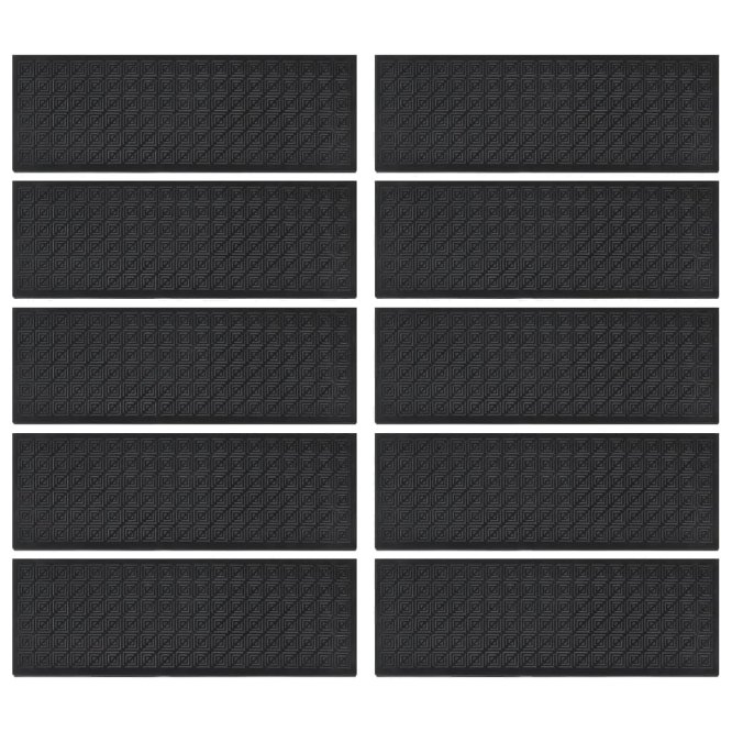• Kestävä materiaali: Askelmatot on valmistettu joustavasta, iskuja vaimentavasta ja kulutusta kestävästä kumista, mikä takaa kestävyyden ja tahrankestävyyden.