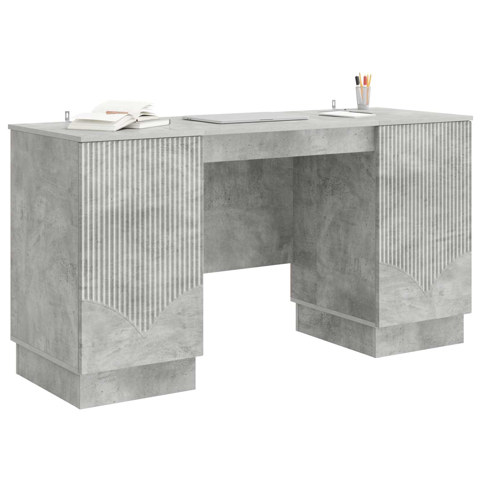Pöytä hyllyllä Betoninharmaa 142,5 x 50 x 75 cm Tekninen puu