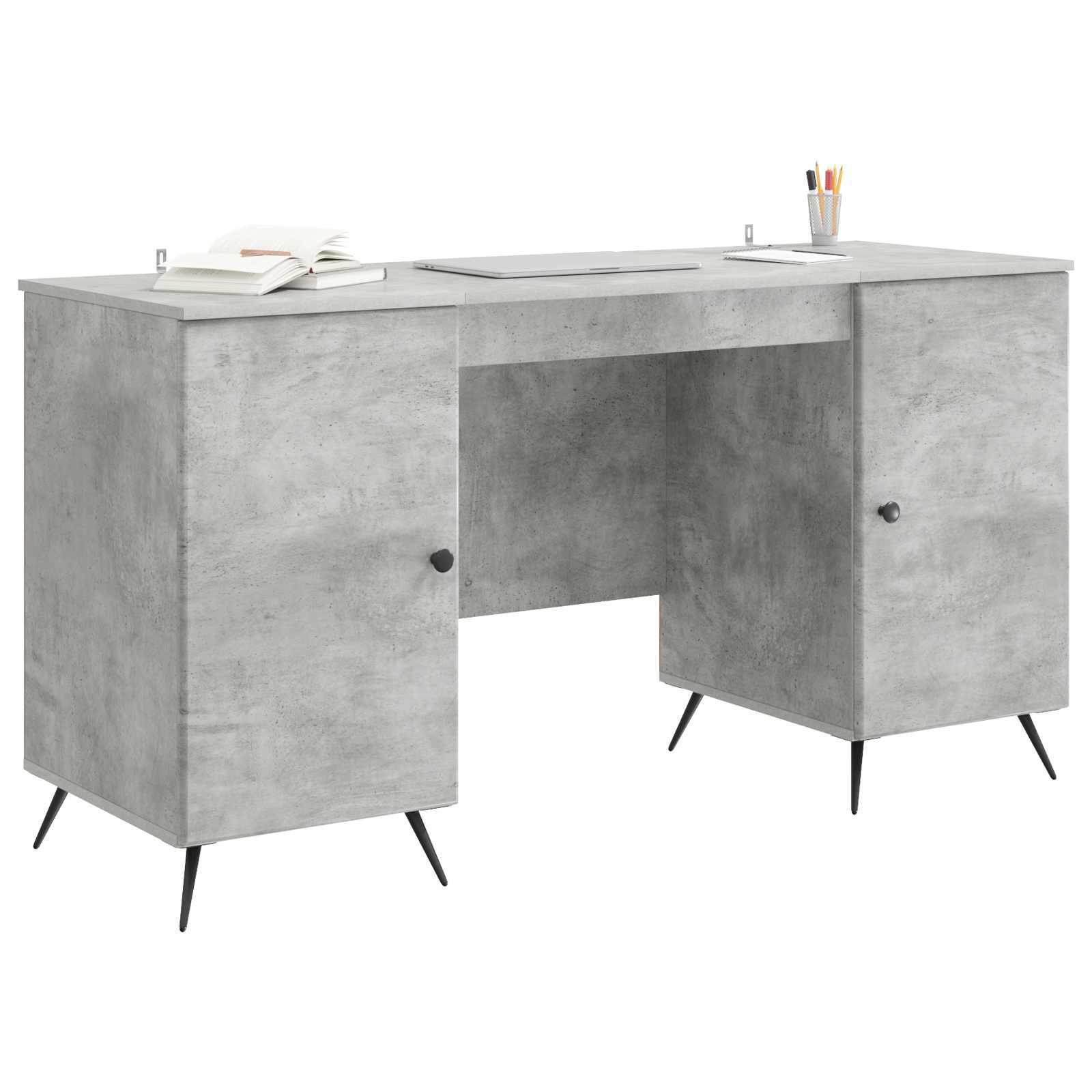 Pöytä hyllyllä Betoninharmaa 142,5 x 50 x 75 cm Tekninen puu