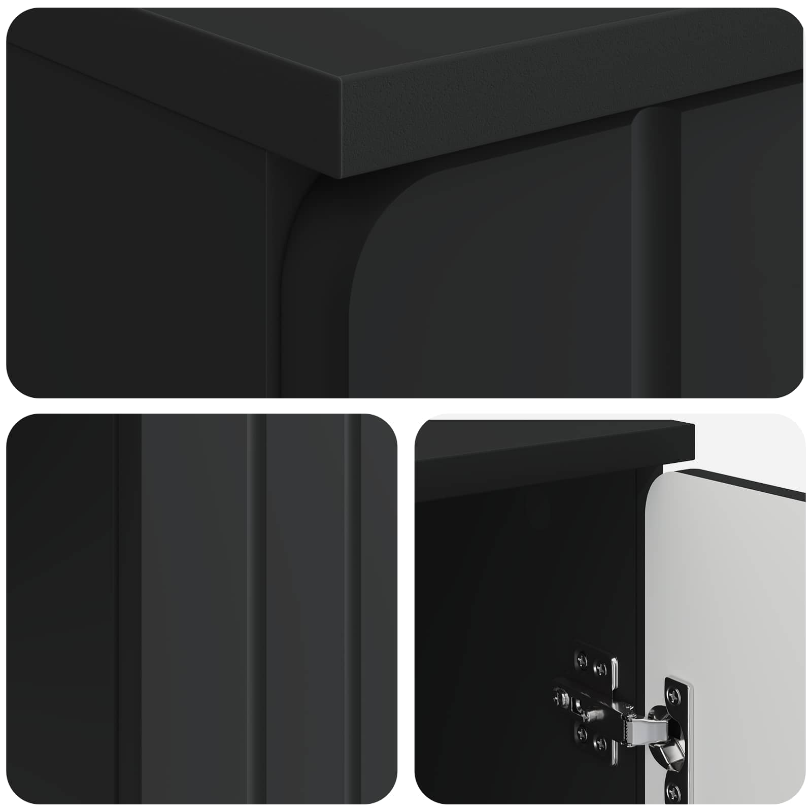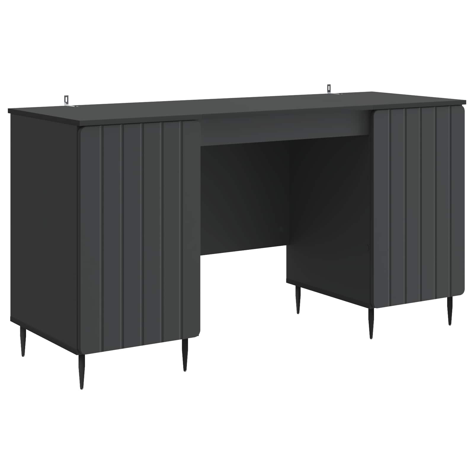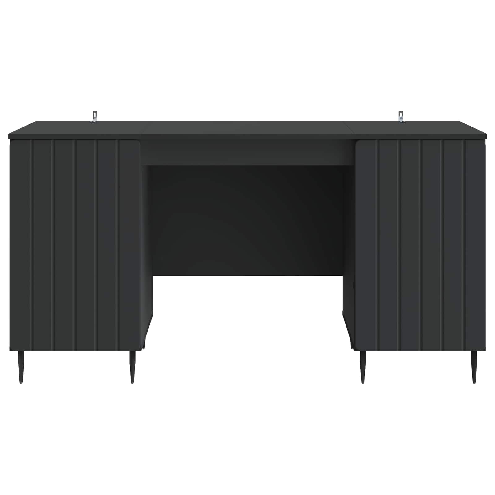 • Sisältää komponentit: Työpöytä sisältää levyjä, jotka on valmistettu eri materiaaleista, kuten MDF, tarjoten säilytystilaa monille tarpeille. Kartiomaiset rautajalat lisäävät tyyliä ja tukevuutta pöydälle, jota täydentävät 90° keinusaranaovet, jotka helpottavat pääsyä säilytystilaan, parantaen pöydän käyttökokemusta.