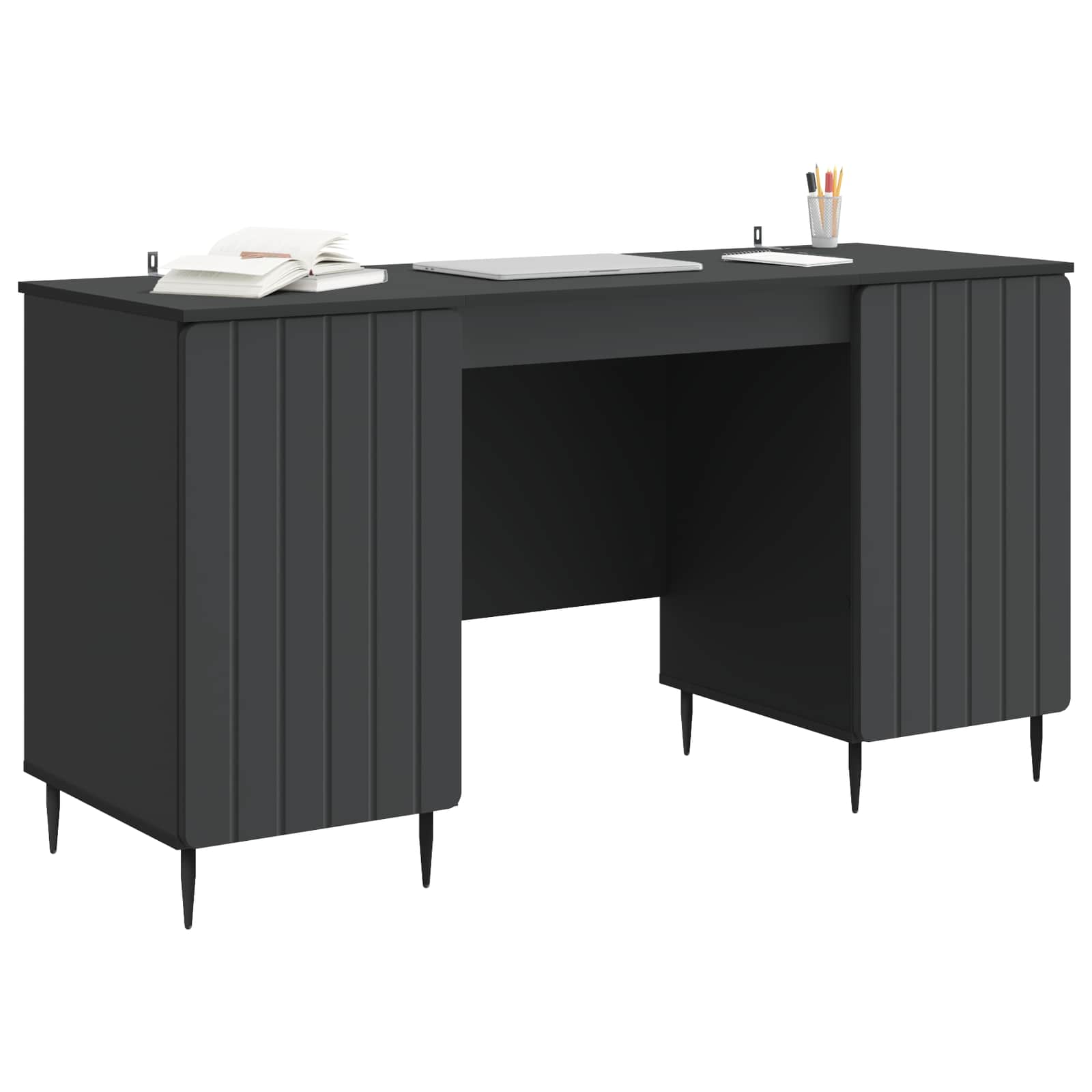 Tämä moderni työpöytäsetti tuo yhteen tyylin ja käytännöllisyyden, ja sen suorakaiteen muotoinen muotoilu sopii täydellisesti nykyaikaiseen elämään. Minimalistiset linjat ja pyöristetyt kuviot lisäävät tyyliä olohuoneeseesi samalla, kun se tarjoaa monipuolisen työtilaratkaisun. Tämä pöytä on suunniteltu nykyaikaisille käyttäjille, jotka arvostavat muotoa ja toimintaa.