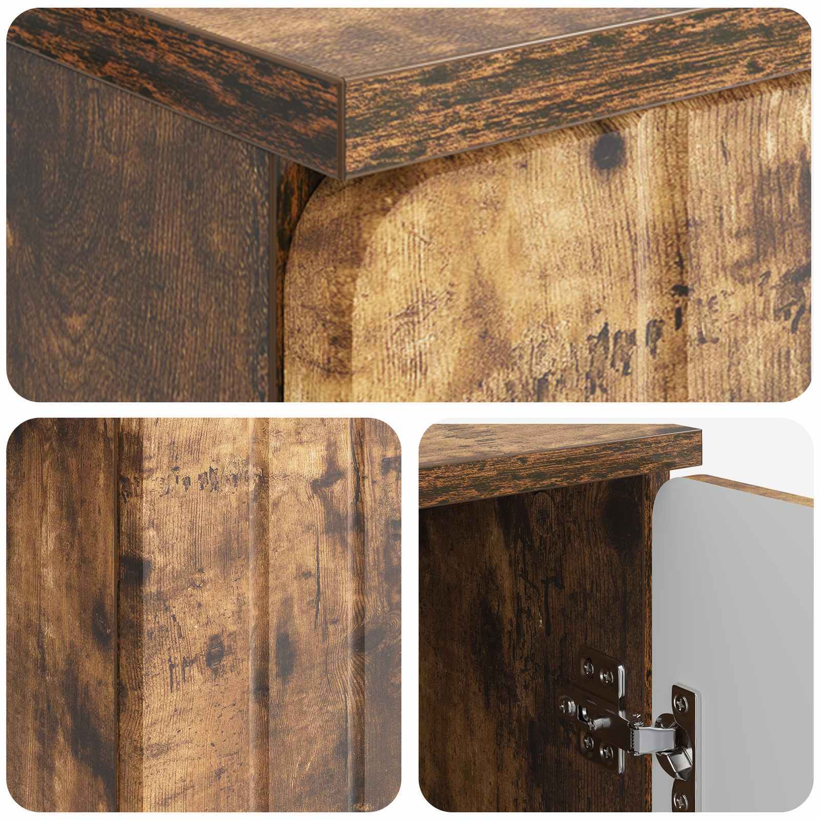 • Sisältää komponentit: Työpöytä sisältää levyjä, jotka on valmistettu eri materiaaleista, kuten MDF, tarjoten säilytystilaa monille tarpeille. Kartiomaiset rautajalat lisäävät tyyliä ja tukevuutta pöydälle, jota täydentävät 90° keinusaranaovet, jotka helpottavat pääsyä säilytystilaan, parantaen pöydän käyttökokemusta.