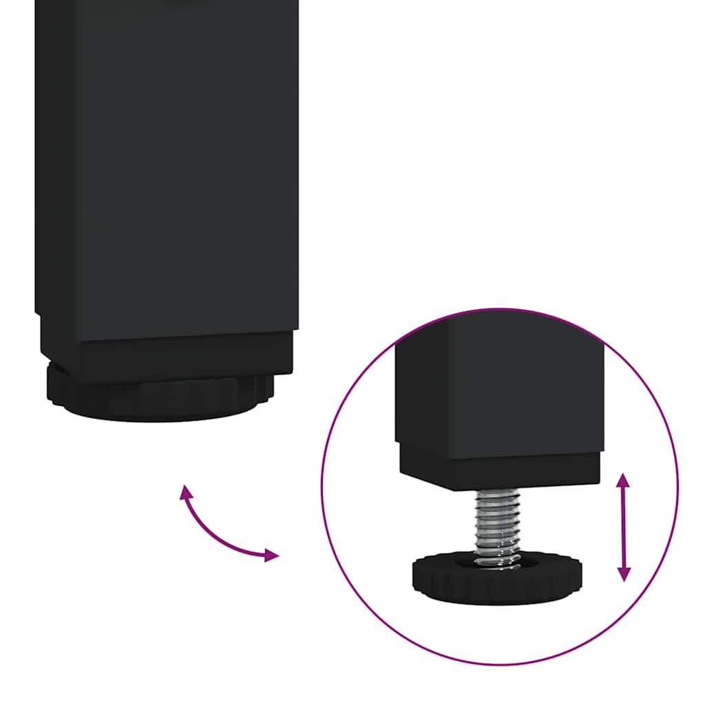 • Teräspylväät Neliömäiset teräspylväät eivät ainoastaan ole tukevia vaan lisäävät teollista ilmettä pöydälle. Ne varmistavat, että pöytä pysyy vakaana kaikilla lattiapinnoilla, tehden siitä luotettavan valinnan pitkäaikaiseen käyttöön.