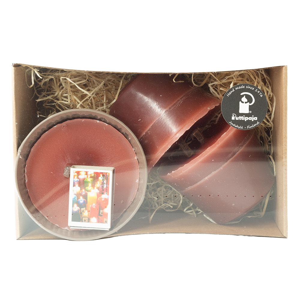 Mukana polttosanko sekä 2 kynttilää ja tulitikut. Pakattu lahjapakkaukseen.