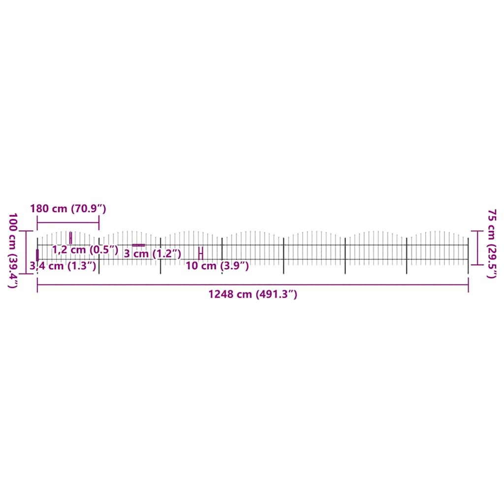 Puutarha-aita keihäskärjillä teräs (0,75-1)x11,9 m musta