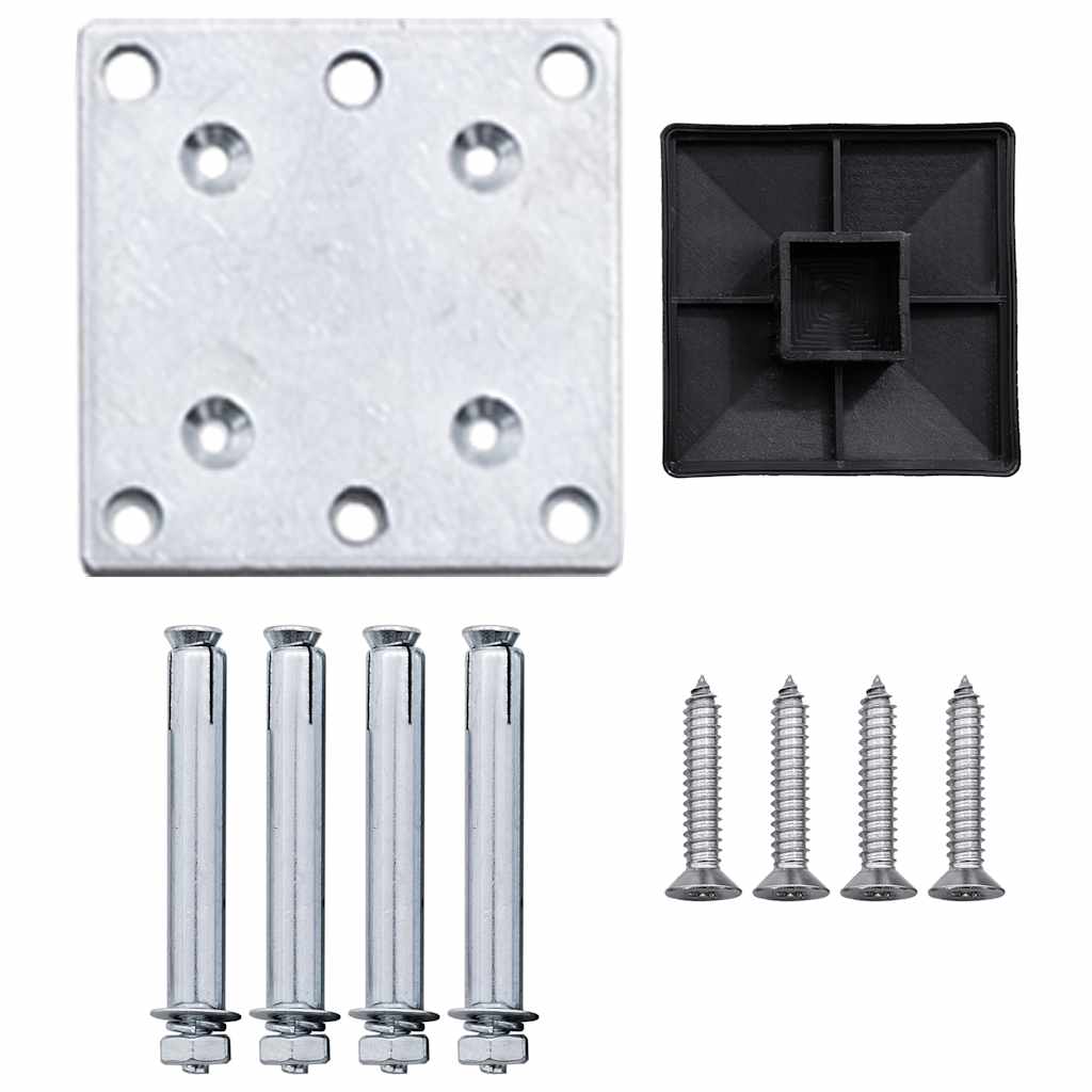 Toimituksessa on mukana 9 puu-muovikomposiittilevyä, 1 pylväs, 1 teräspohja ja 1 alumiinitanko.