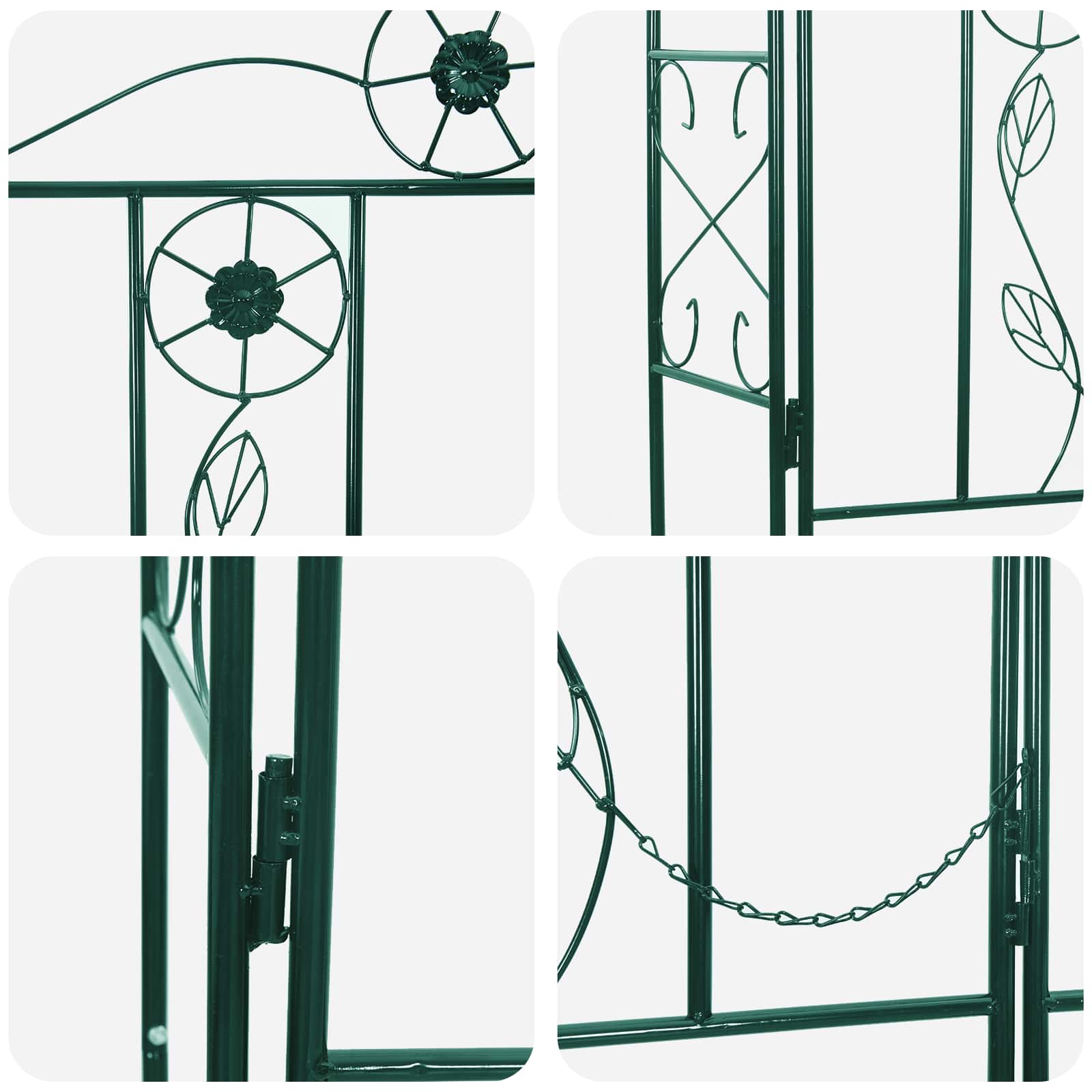 Tää moderni puutarha-arkki tuo klassista tyyliä sun puutarhaan elegantin ja perinteisen muotoilun kautta. Sen suora, suorakaiteen muotoinen rakenne nostaa ilmeitä ulkotiloissa, tarjoten ripauksen hienostuneisuutta. Voit käyttää sitä kehystämään polkuja ja sisäänkäyntejä tai antaa köynnösten kiertyä sen tankojen ympärille, mikä lisää sen ajattoman läsnäolon ja viehätyksen. Huolellisesti tehty sileä pinta tuo esiin laatua ja tyyliä, vetäen katseita sen symmetrisestä kauneudesta.