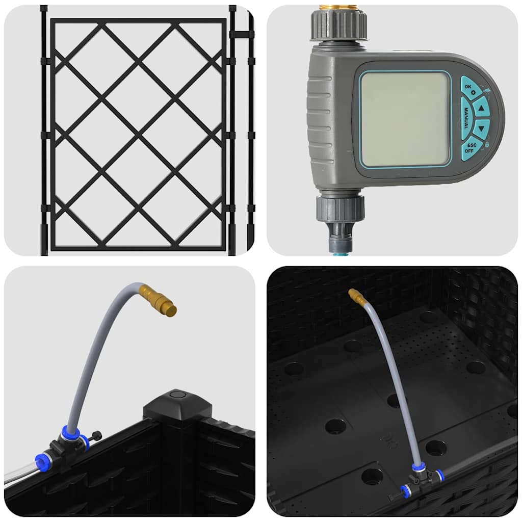 Tämä musta neliön muotoinen muovinen kukkaruukku tuo tyylin puutarhanhoitoosi. Se on 126 cm korkea ja yhdistää näppärästi toiminnallisuuden ja ulkonäön, sopii hyvin sekä sisälle että ulos. Musta matta pinta antaa tyylikkään ilmeen, tehden siitä täydellisen näyttämään kirkkaita kukkia tai kiipeileviä kasveja puutarhassasi tai parvekkeellasi.