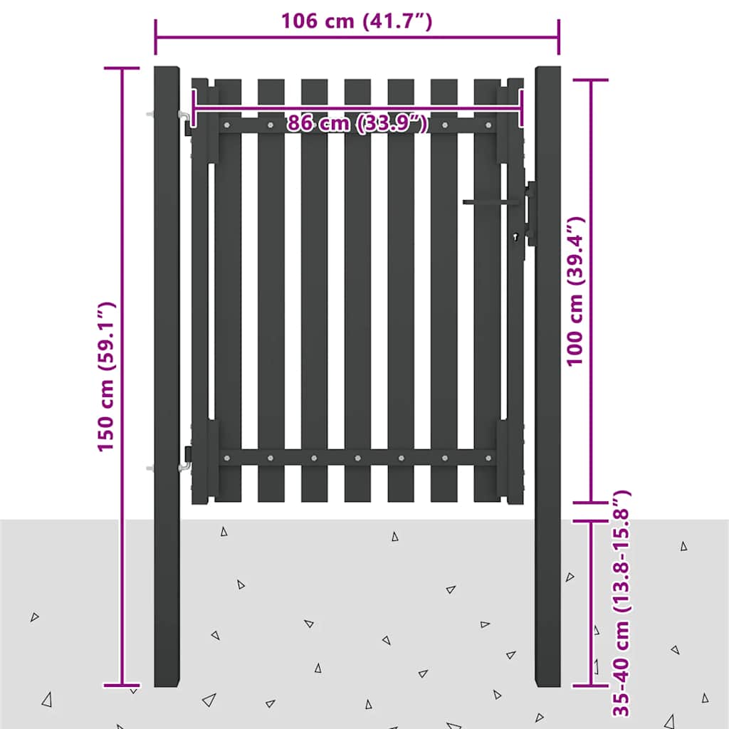 Puutarhan aitaportti teräs 1×1,5 m antrasiitti