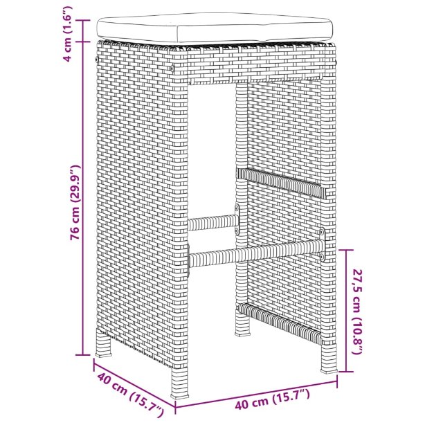 Puutarhan baarijakkarat tyynyillä 6 kpl harmaa polyrottinki