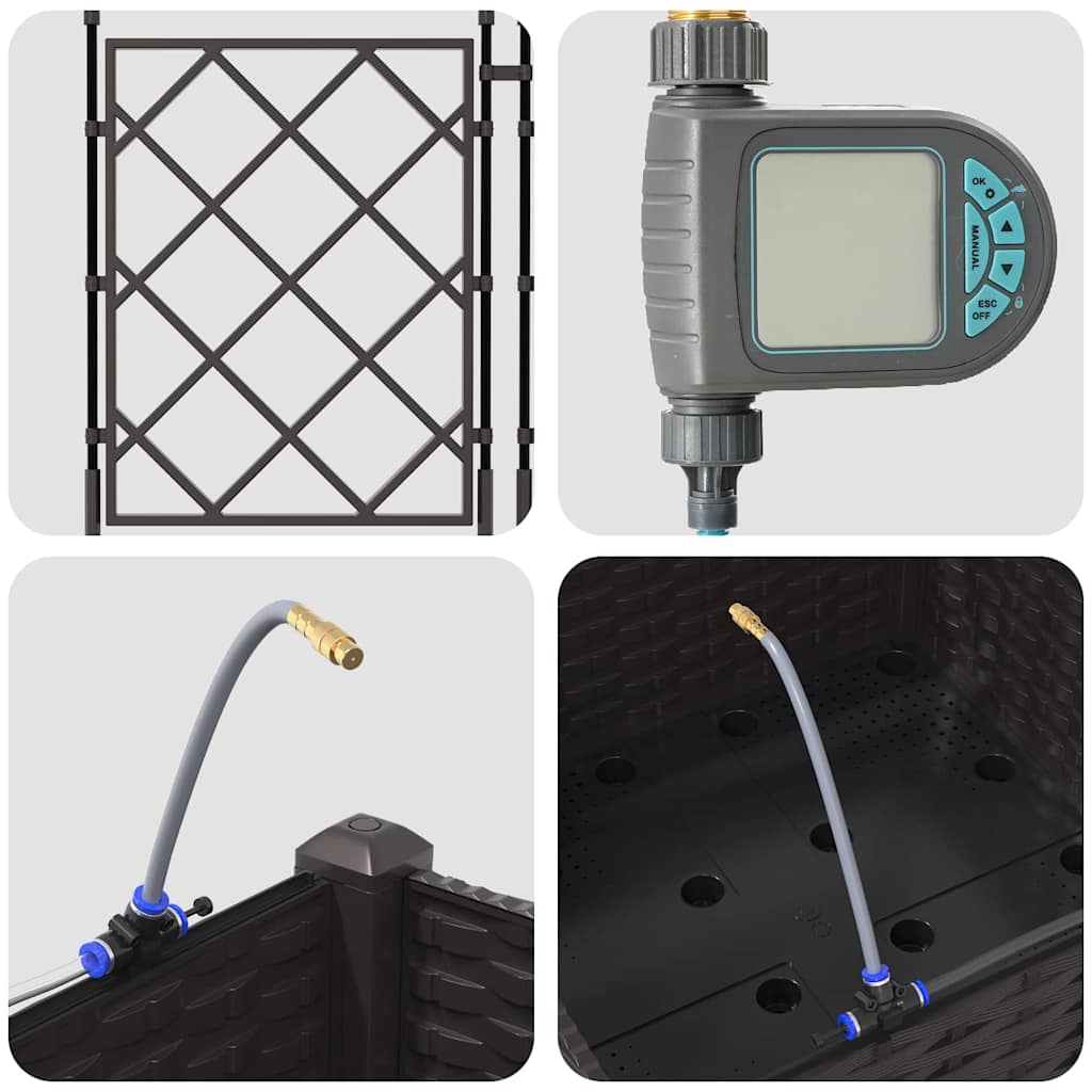 Tää korkeussäädettävä hartsi kukkalaatikko tuo sekä toimivuutta että tyyliä sisä- ja ulkotiloihin, sleek-muotoilulla, joka sulautuu luontoon. Se on ideaalinen parvekkeille tai puutarhoille, ja nostaa kiipeilykasveja niin, että ne saa auringonvaloa ja näyttää hyvältä.