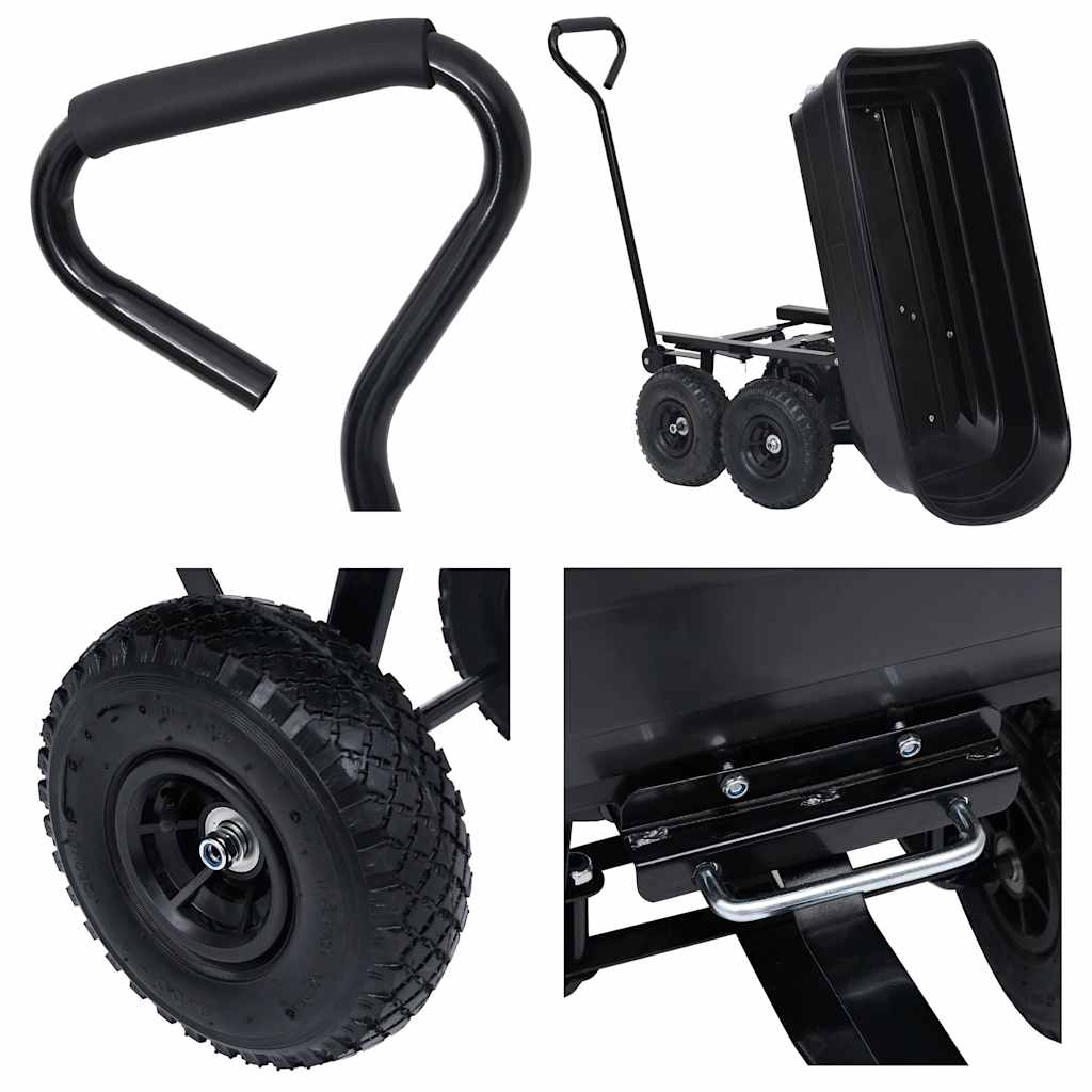 75 litran kapasiteetin ansiosta tämä kippikärry tekee tavaroiden siirtämisestä ja purkamisesta helppoa sen tukevien ilmarenkaiden, monipuolisen vetokahvan ja kätevän kippimekanismin ansiosta. Teräsrungolla varustettu kärry on hoitovapaa, helppo puhdistaa ja ruostumaton, joten se tarjoaa vuosien käyttöiän.
