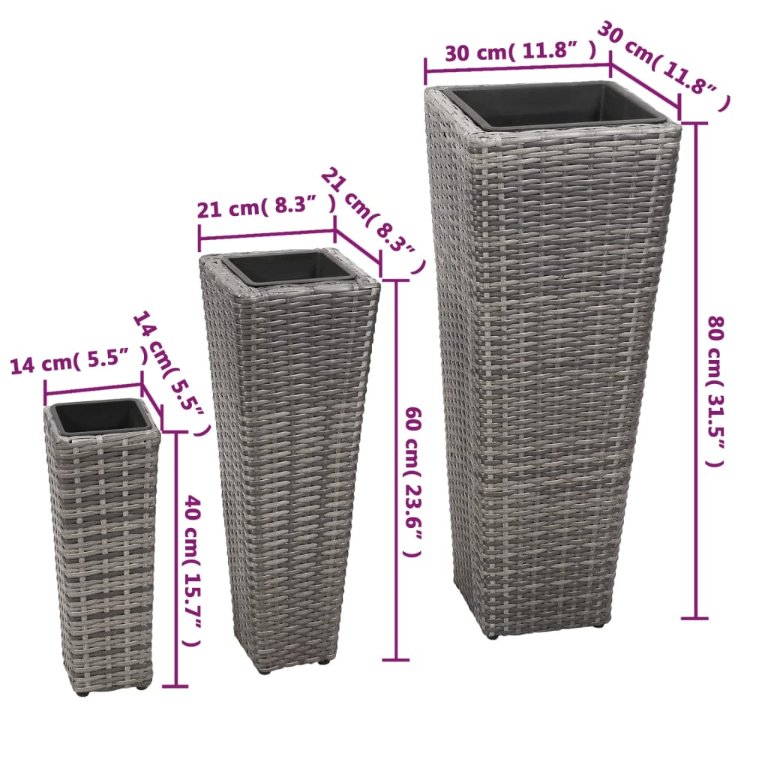 Puutarhan korotetut kukkalaatikot 3 kpl polyrottinki harmaa
