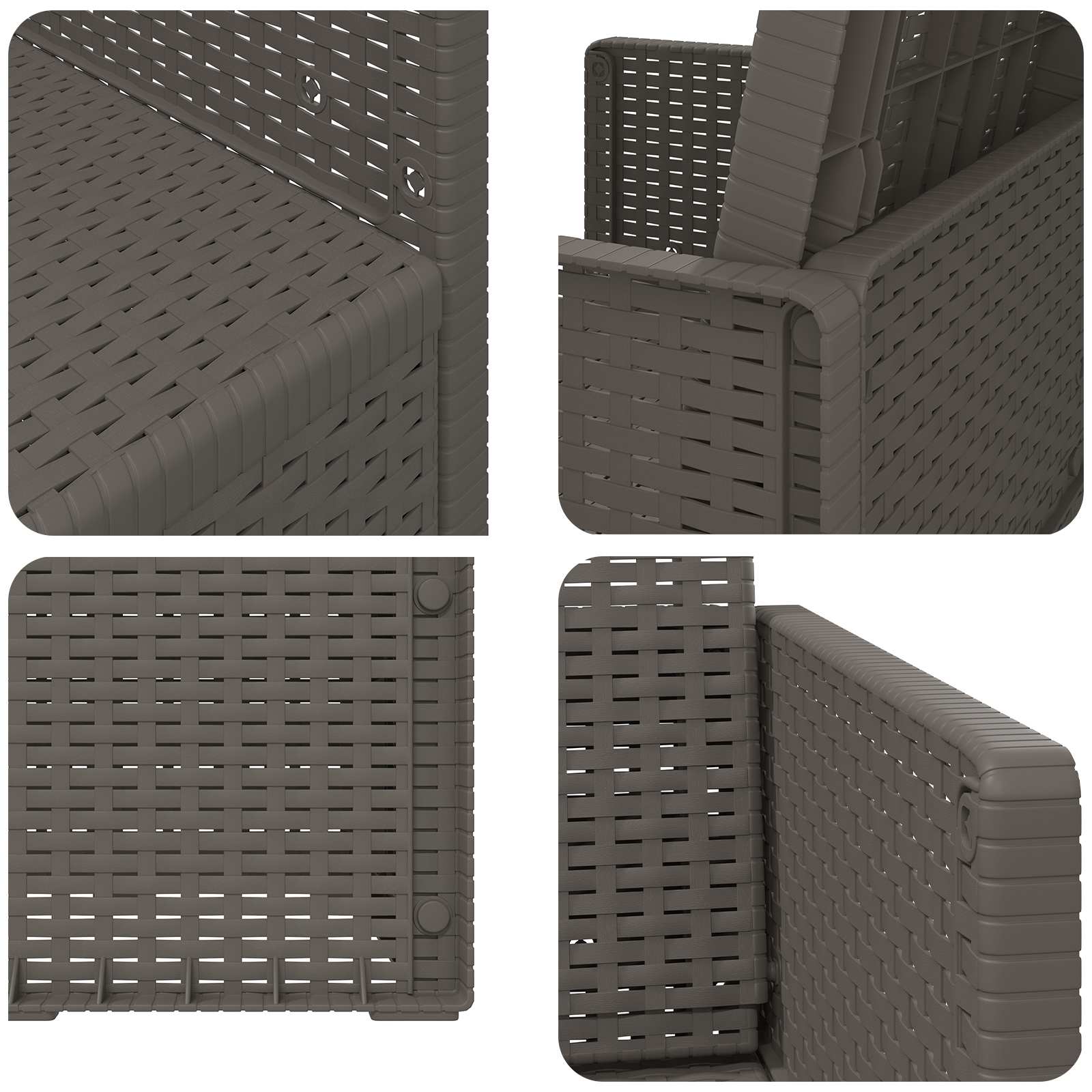 • Kestävä materiaali: Valmistettu kestävästä materiaalista tukevalla rakenteella, nämä tuolit ovat sään- ja UV-kestäviä, mikä auttaa kestämään pitkään auringonpaistetta, vähentäen haalistumisen tai materiaalin heikkenemisen riskiä ajan myötä, samalla kun ne säilyvät siistin ja tasaisen näköisinä.