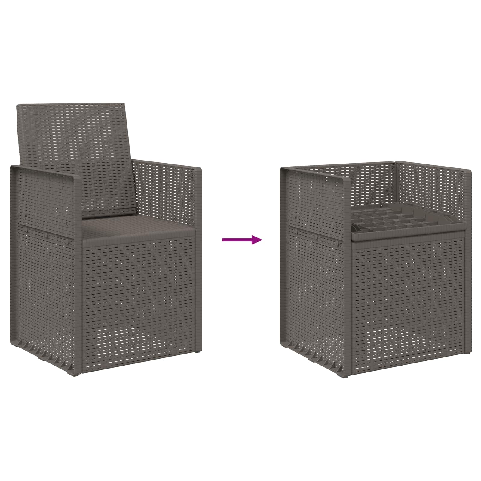 • Käännettävä rakenne: Käännettävä ominaisuus mahdollistaa selkänojan taittamisen alas helposti, jolloin tuolit mahtuvat liukumaan hieman korkeampien pöytien alle tehokkaampaa säilytystä varten. Tämä käytännöllinen suunnittelu tukee tilaa säästäviä järjestelyjä ja auttaa pitämään ulkotilat siisteinä ja järjestettyinä, kun niitä ei käytetä.