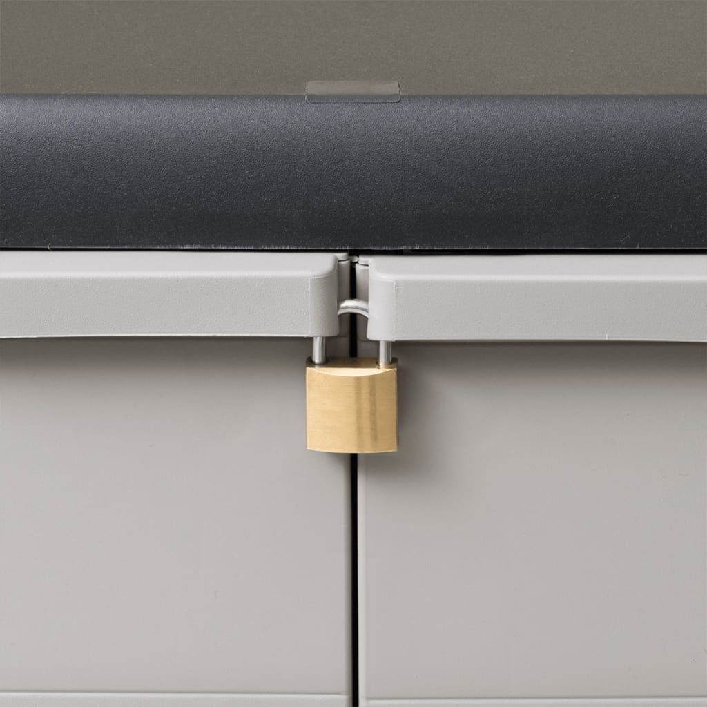 Tämä TÜV-GS sertifioitu kaappi on valmistettu tukevasta, kestävästä polypropeenista (PP). Varastokaapissa on tuuletetut hyllyt, jotka voidaan säätä sopimaan eri kokoisille esineille. Puutarhakaappi voidaan lukita riippulukolla, tämä takaa turvallisuuden (lukko ei mukana).