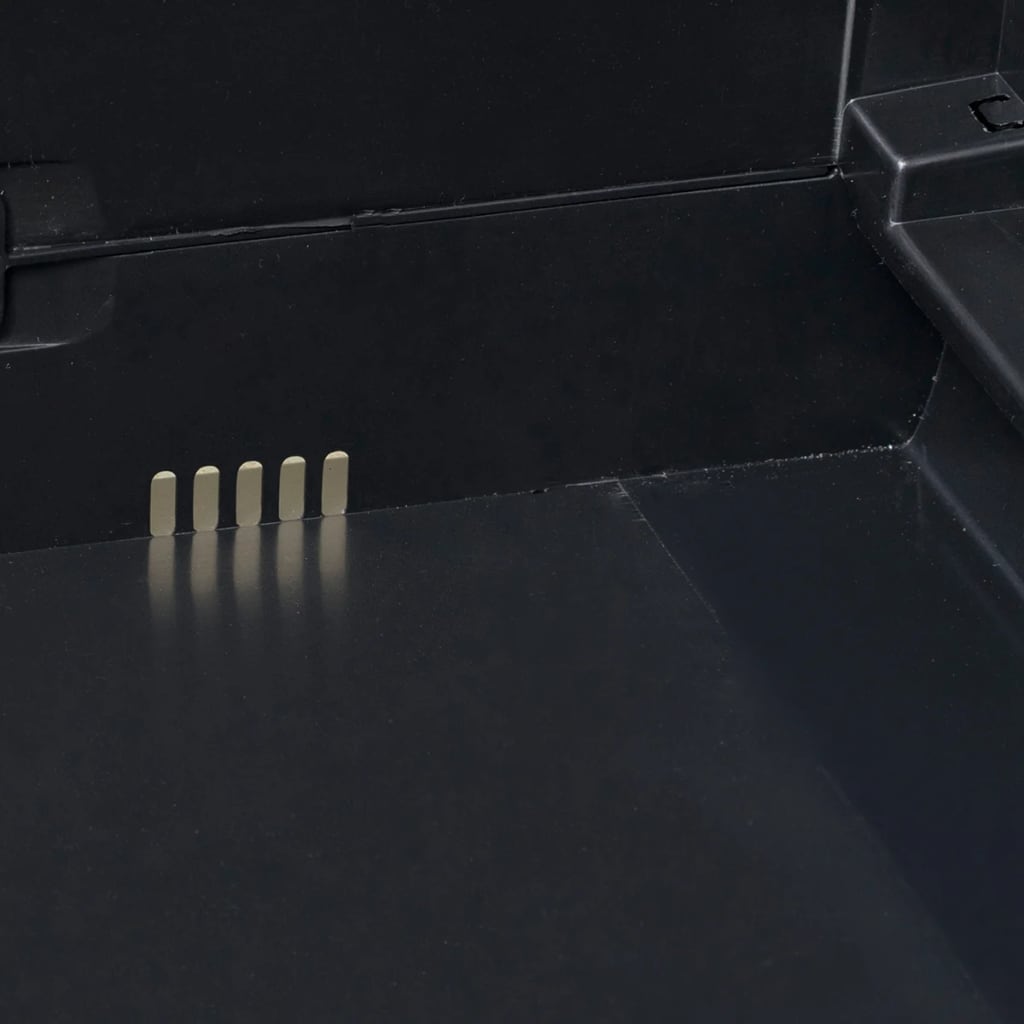 Tämä TÜV-GS sertifioitu kaappi on valmistettu tukevasta, kestävästä polypropeenista (PP). Varastokaapissa on tuuletetut hyllyt, jotka voidaan säätä sopimaan eri kokoisille esineille. Puutarhakaappi voidaan lukita riippulukolla, tämä takaa turvallisuuden (lukko ei mukana).