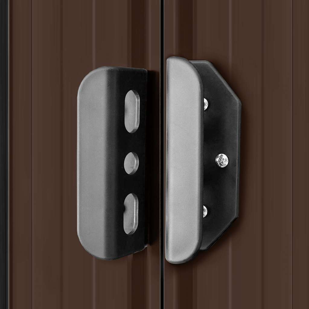Tämä varastovaja on varustettu tuuletusaukoilla, mikä varmistaa erinomaisen ilmanvaihdon ja vähentää kosteuden ja hajun kertymistä taloon. Edessä olevat kaksinkertaiset liukuovet mahdollistavat helpon pääsyn ja poistumisen. Korroosionkestävän galvanoidun teräksen ansiosta työkaluvaja on tukeva ja kestävä sekä kestää käytössä pitkään. Se sisältää myös teräsperustan, joka antaa ylimääräistä vakautta.
