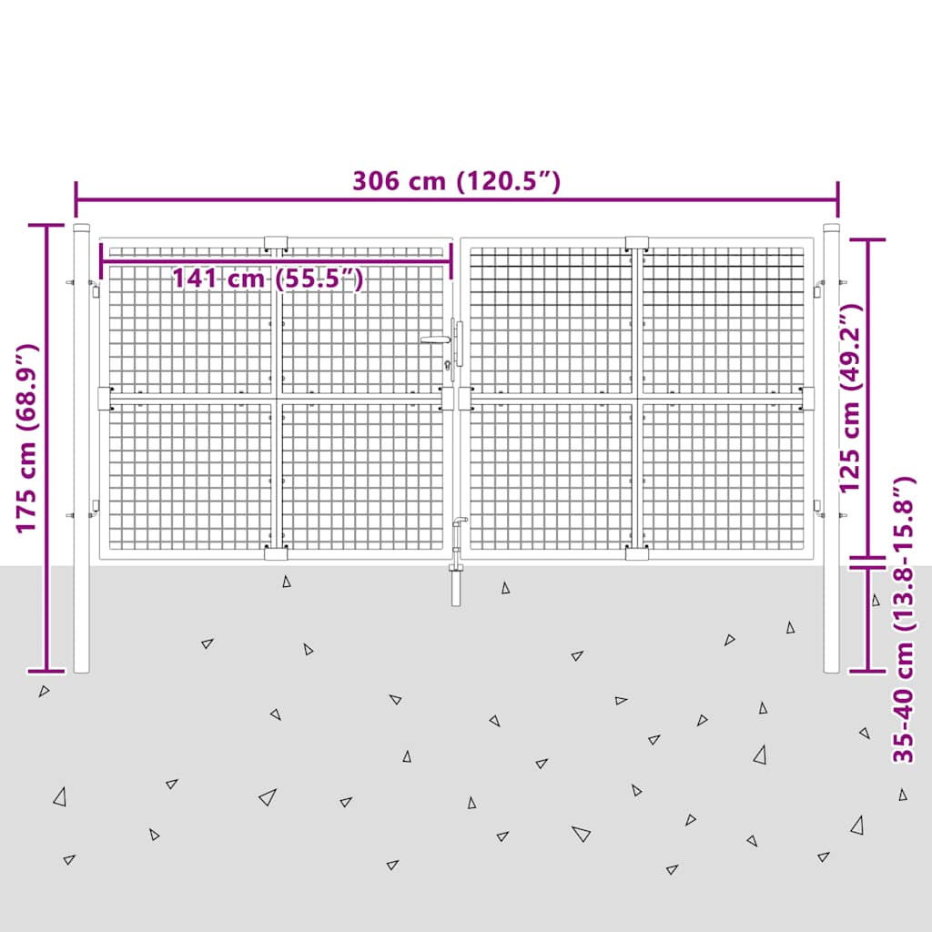 Puutarhan verkkoportti hopea 300×175 cm galvanoitu teräs