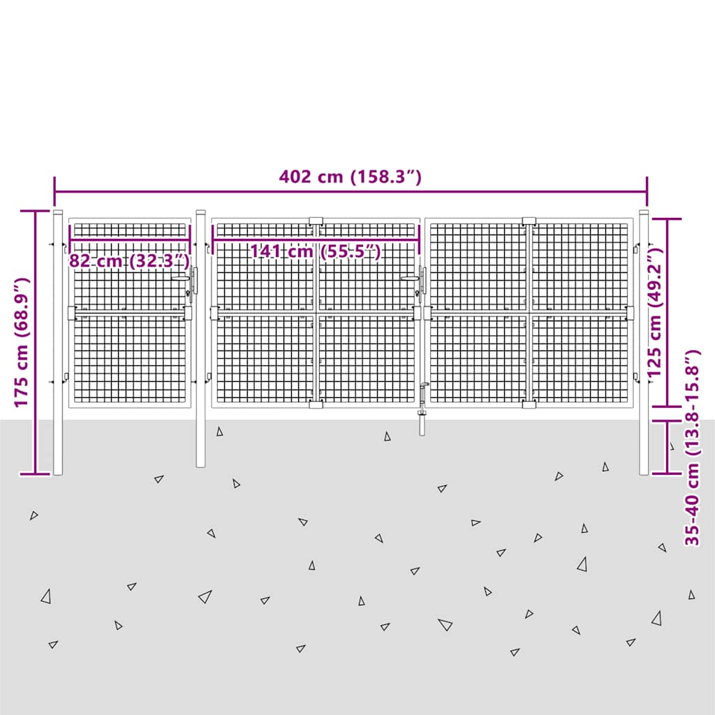 • Helppo asentaa: Teräksisessä puutarhaportissa on kaksi sivutolppaa, joissa on pulttisaranat asennuksen helpottamiseksi.
