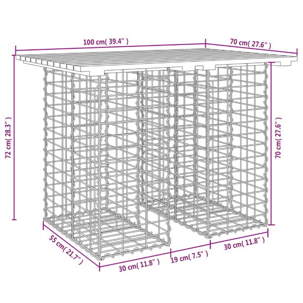 • Tukeva ja vakaa jalusta: Tämän ulkopenkin alaosana toimii galvanoidusta teräksestä valmistettu kivikori, joka on suunniteltu täytettäväksi kivillä tai soralla lisäkauneuden luomiseksi. Teräsverkko on hitsattu poikki- ja pituussuuntaisilla rautalangoilla jokaisessa risteyskohdassa ylimääräisen vakauden takaamiseksi.