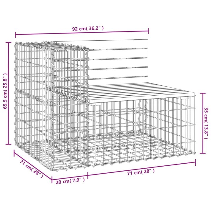 • Tukeva ja vakaa jalusta: Tämän ulkopenkin alaosana toimii galvanoidusta teräksestä valmistettu kivikori, joka on suunniteltu täytettäväksi kivillä tai soralla lisäkauneuden luomiseksi. Teräsverkko on hitsattu poikki- ja pituussuuntaisilla rautalangoilla jokaisessa risteyskohdassa ylimääräisen vakauden takaamiseksi.