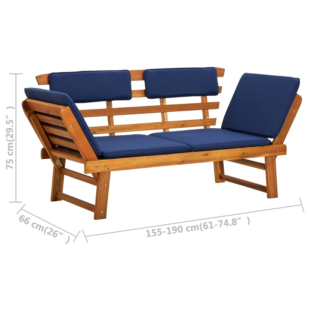 Puutarhapenkki tyynyillä 2-in-1 190 cm täysi akasiapuu