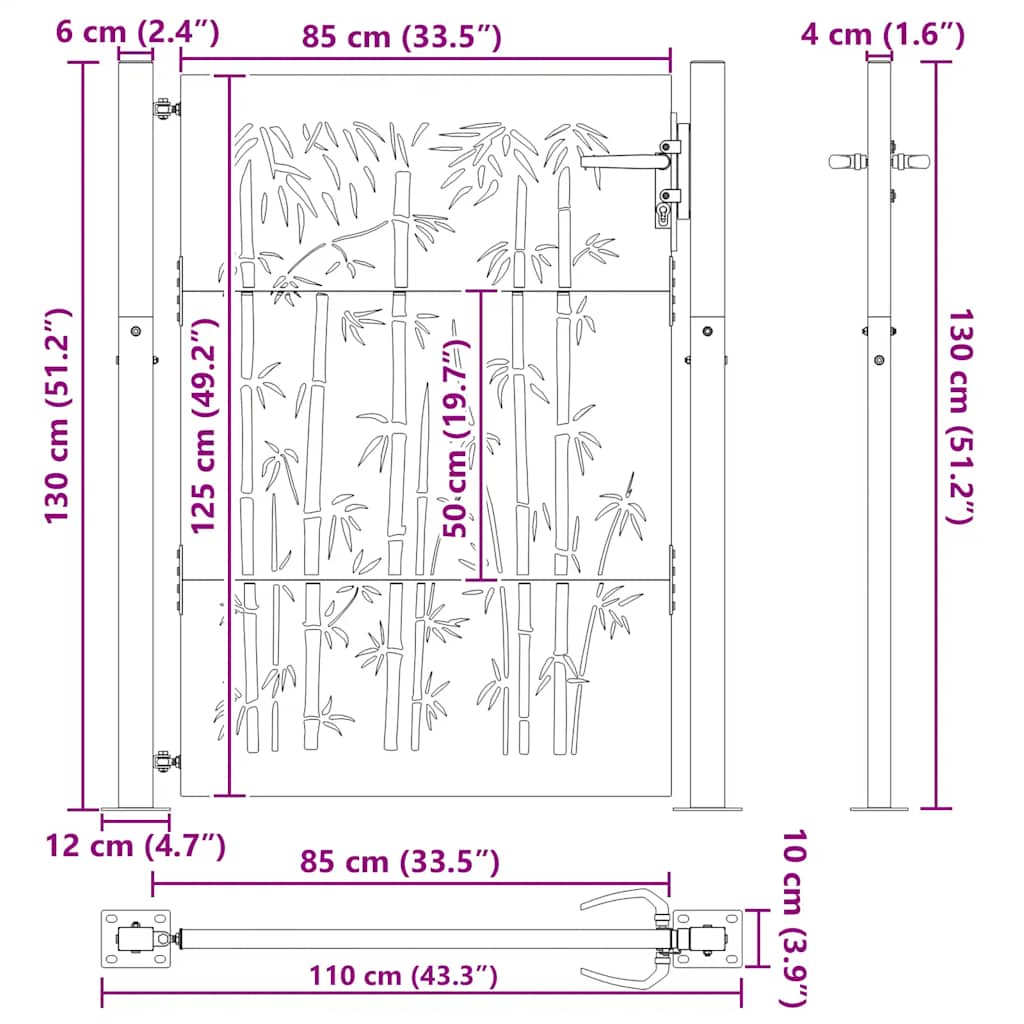 Puutarhaportti 105×130 cm corten teräs bambukuvio