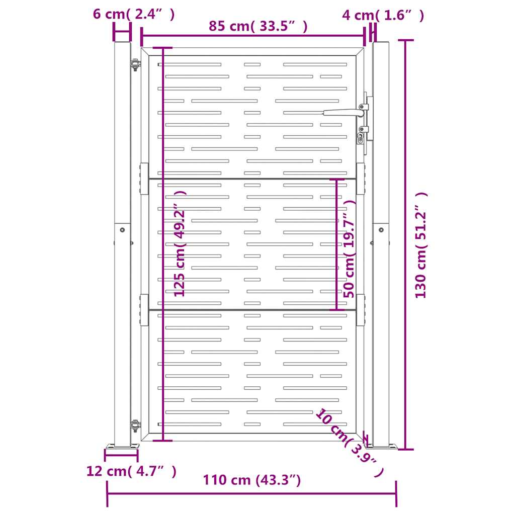 Puutarhaportti 105×130 cm corten teräs raitakuvio