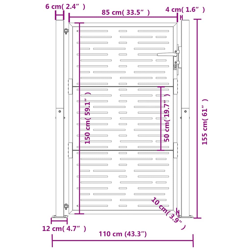 Puutarhaportti 105×155 cm corten teräs raitakuvio