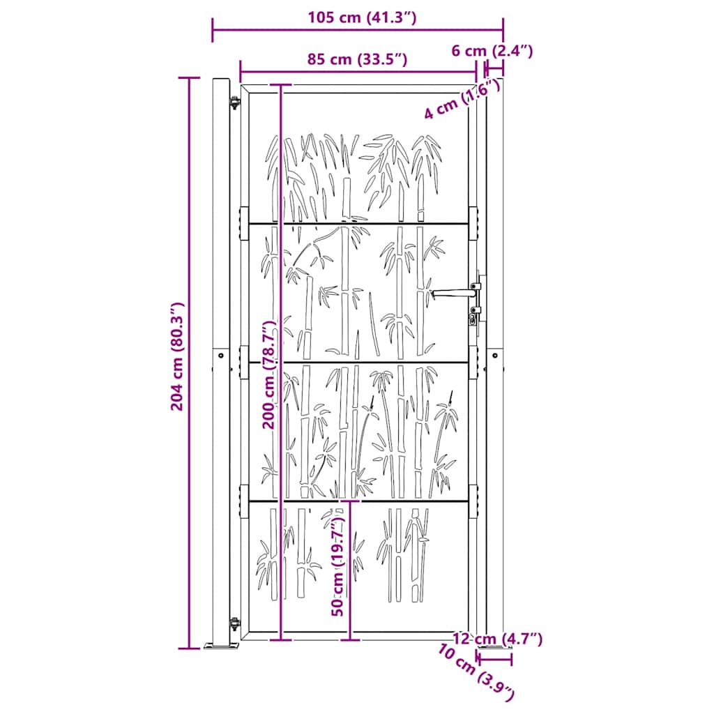 Puutarhaportti 105×205 cm corten teräs bambukuvio