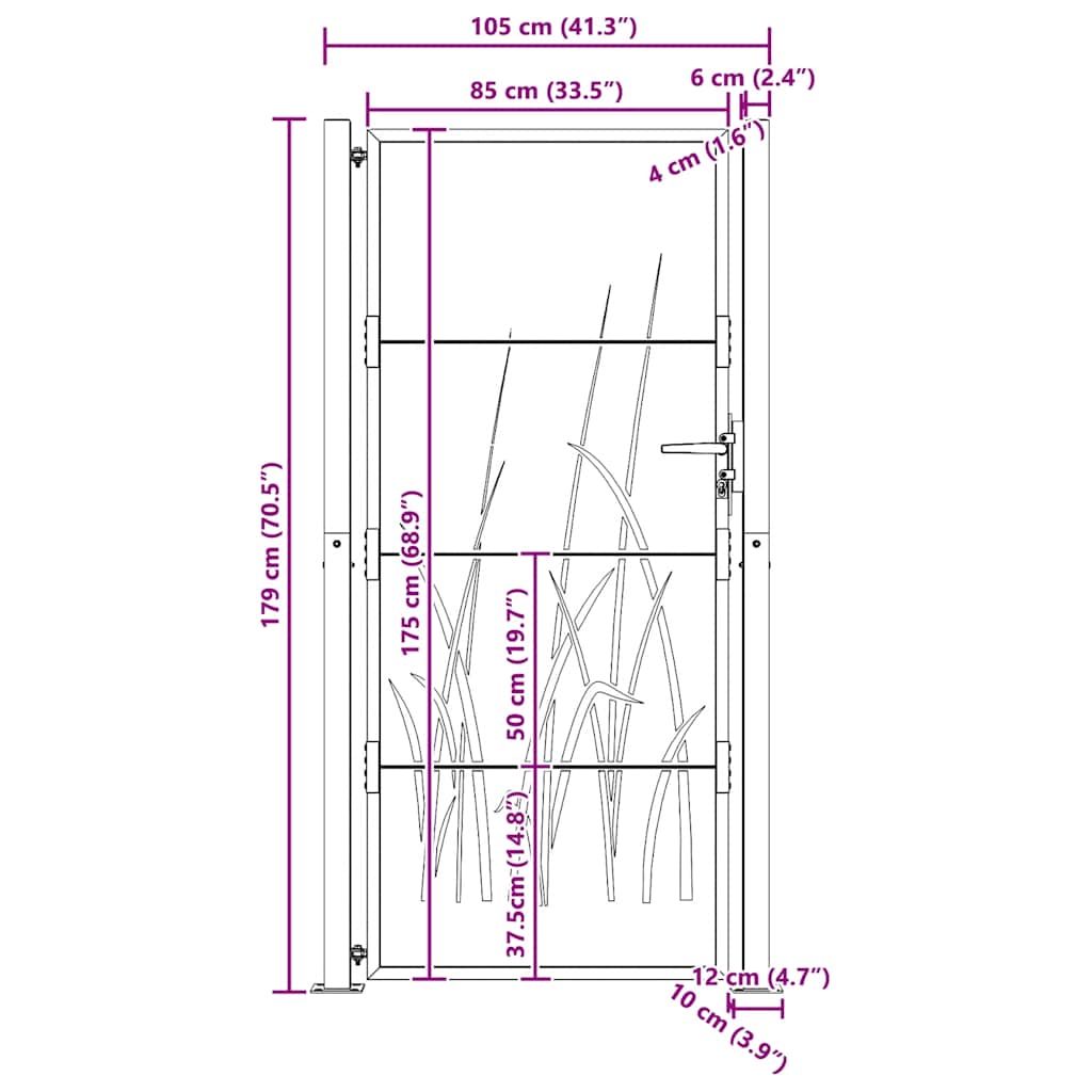 Puutarhaportti 85×100 cm corten teräs bambukuvio