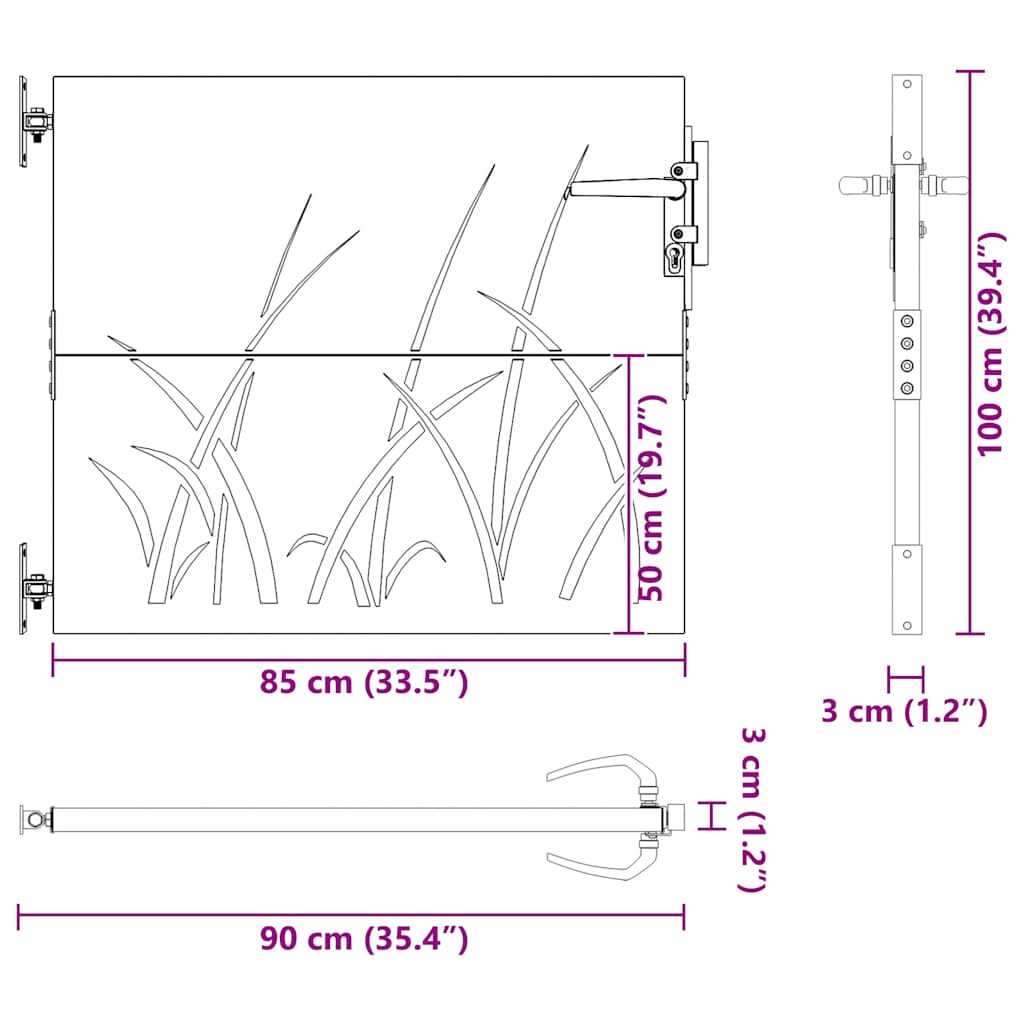 Puutarhaportti 85×100 cm corten teräs ruohokuvio