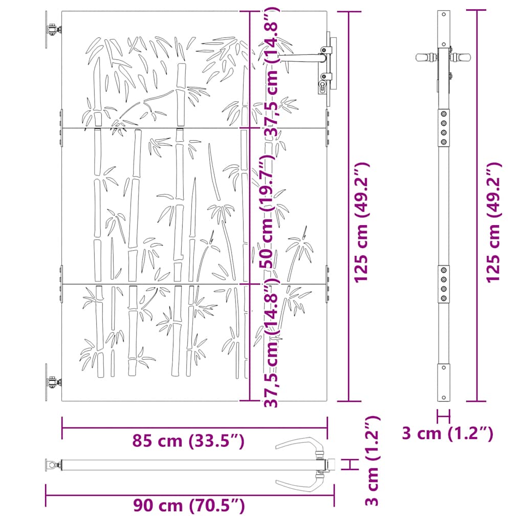 Puutarhaportti 85×125 cm corten teräs bambukuvio
