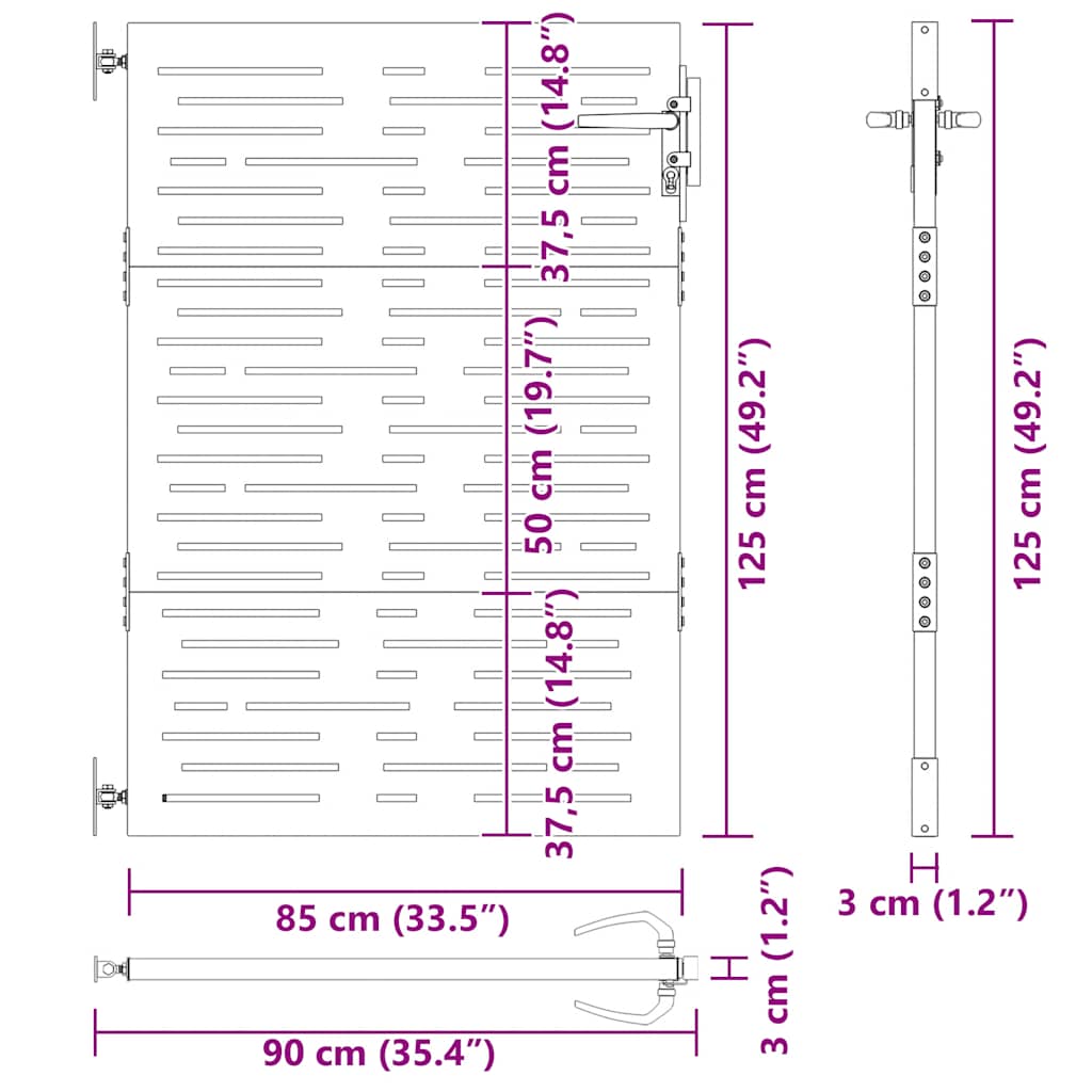 Puutarhaportti 85×125 cm corten teräs raitakuvio
