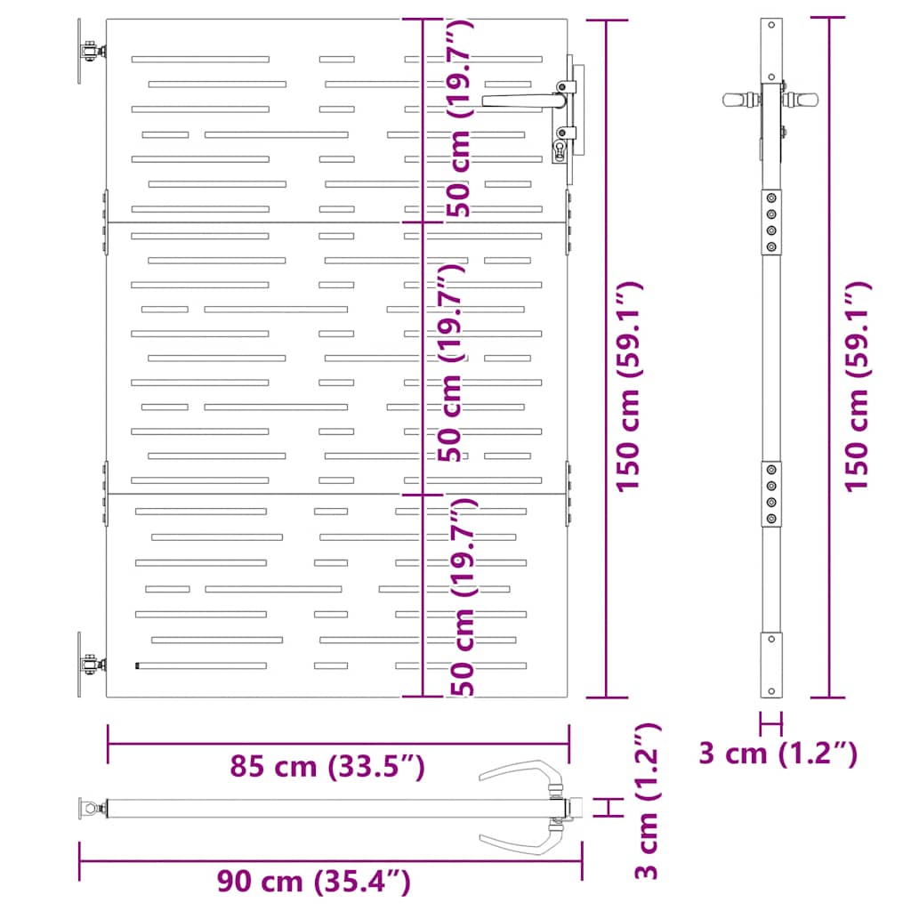 Puutarhaportti 85×150 cm corten teräs raitakuvio