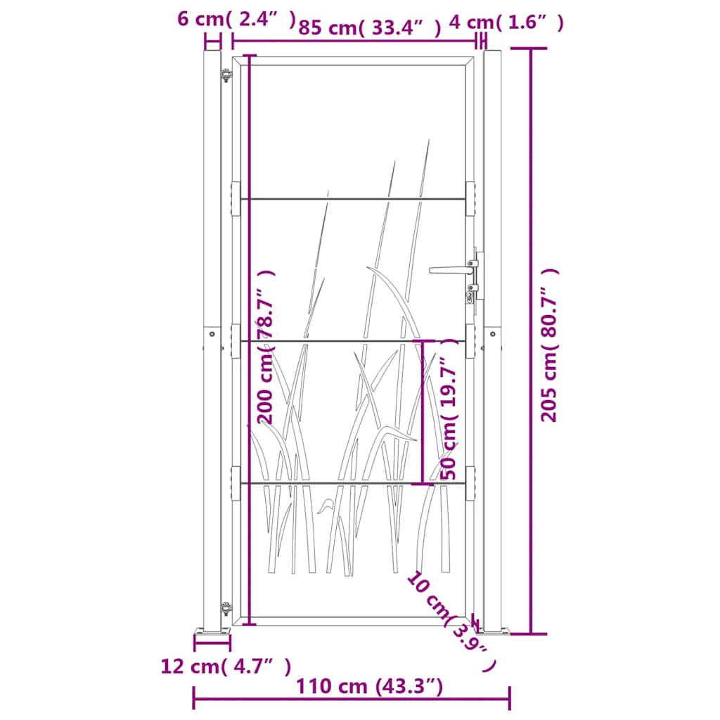 Puutarhaportti antrasiitti 105×205 cm teräs ruohokuvio