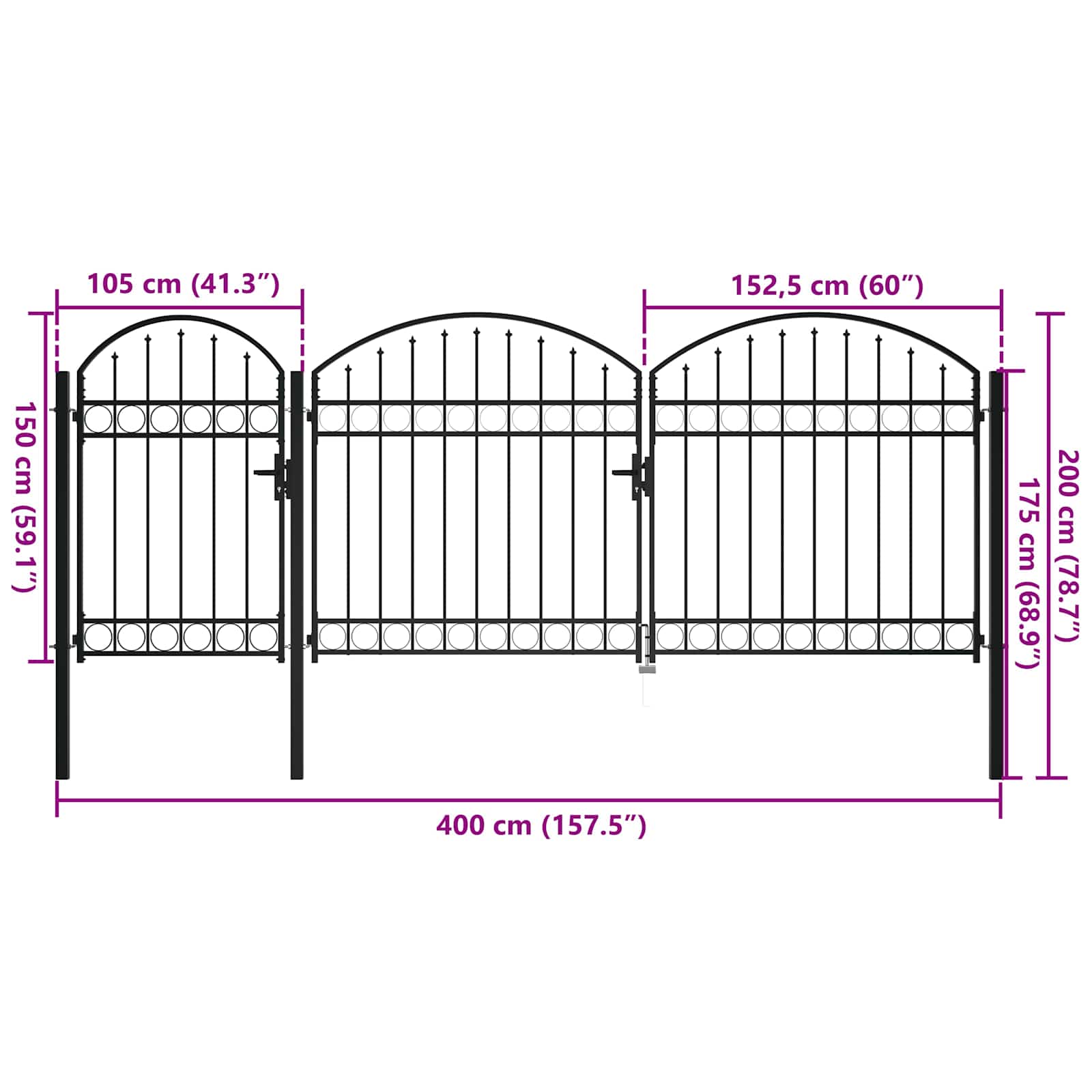 Puutarhaportti Musta 200 x 400 cm Teräs