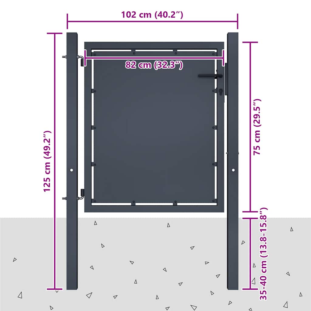 Puutarhaportti teräs 100×75 cm antrasiitti