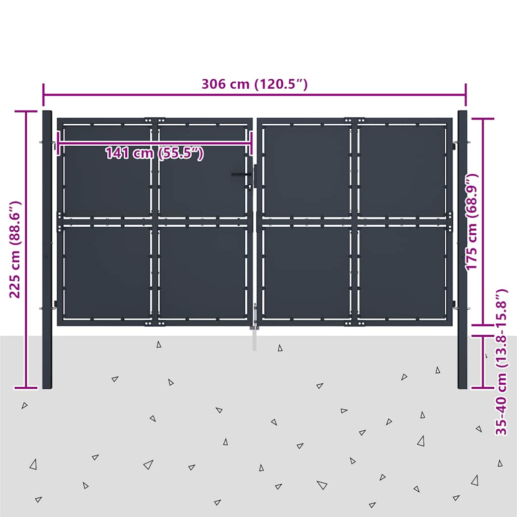 Puutarhaportti teräs 300×175 cm antrasiitti