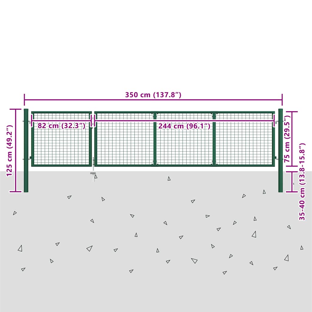 Puutarhaportti teräs 350×100 cm vihreä