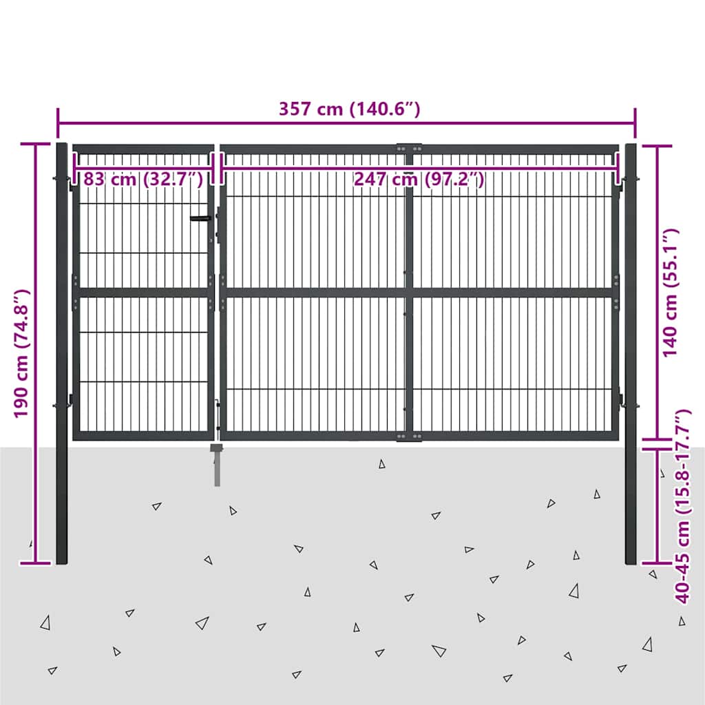 Puutarhaportti tolpilla teräs 350×140 cm antrasiitti