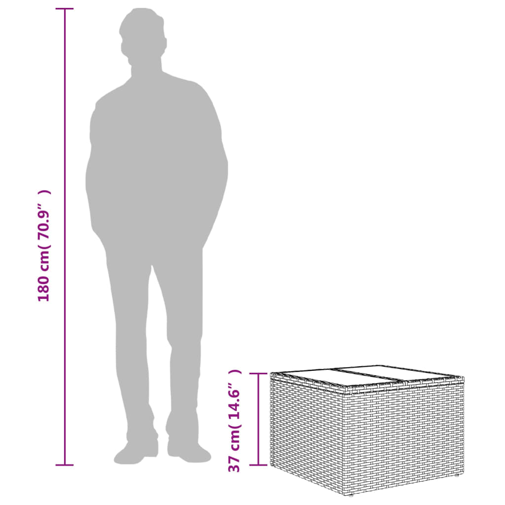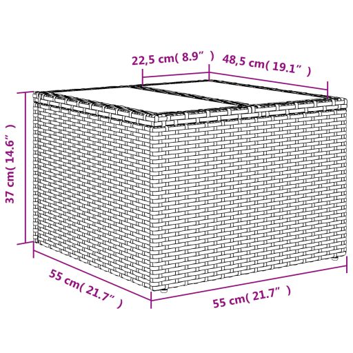 Puutarhapöytä lasipöytälevyllä beige 55x55x37 cm polyrottinki