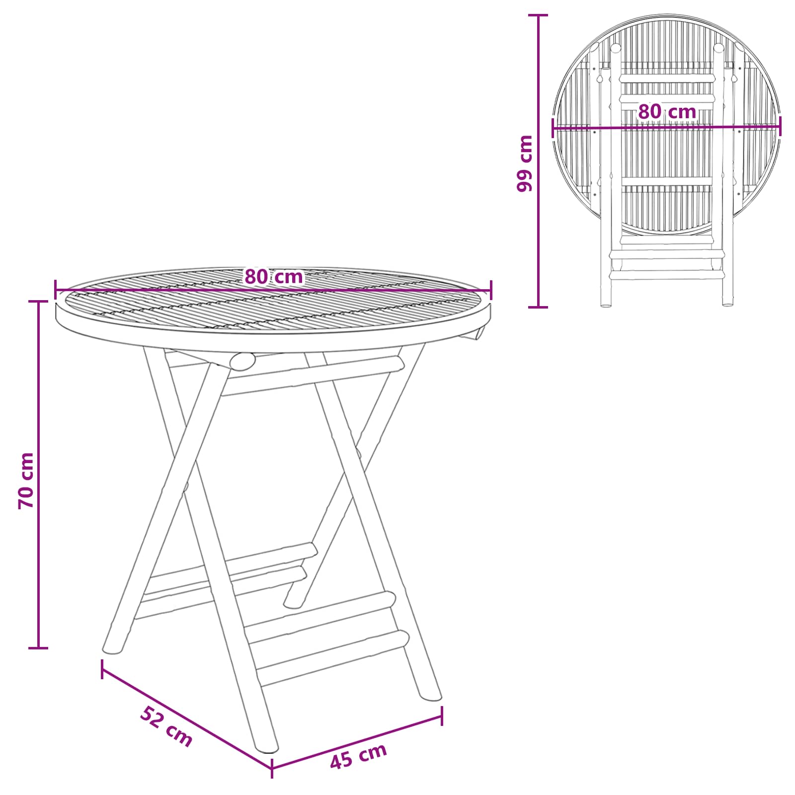Puutarhapöytä Luonnollinen 80 x 70 cm Bambu