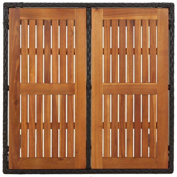 Puutarhapöytä puulevyllä musta 90x90x75 cm polyrottinki