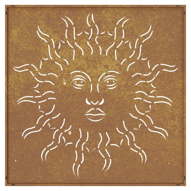 Puutarhaseinäkoriste 55×55 cm corten teräs aurinkokuvio