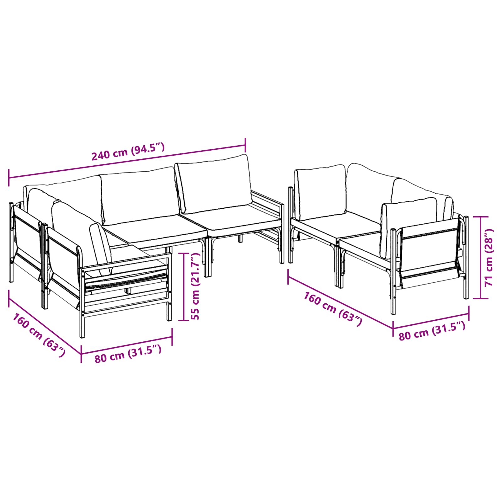 • Modulaarinen järjestely: Nauti siitä, että voit säätää istuinmukavuuksia just niin kuin haluat. Olipa kyse tiiviistä sijoittelusta tai tilavasta sosiaalisesta alueesta, muotoilua on helppo muokata.
